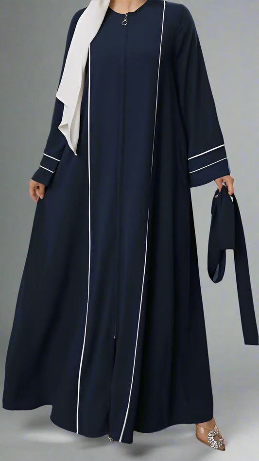 ABAYA WITH DOUBLE BINDING ON SLEEVE AND FRONT-Blue