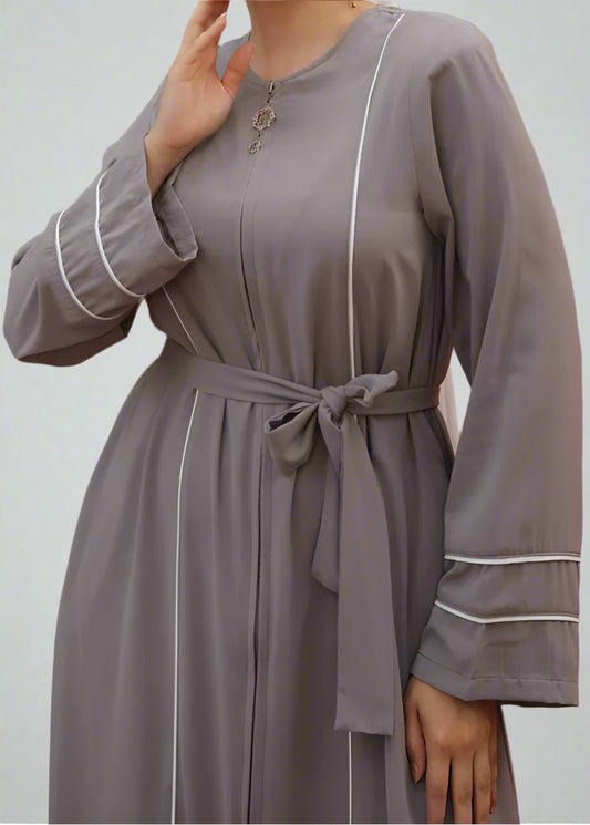 ABAYA WITH DOUBLE BINDING ON SLEEVE AND FRONT-Gray