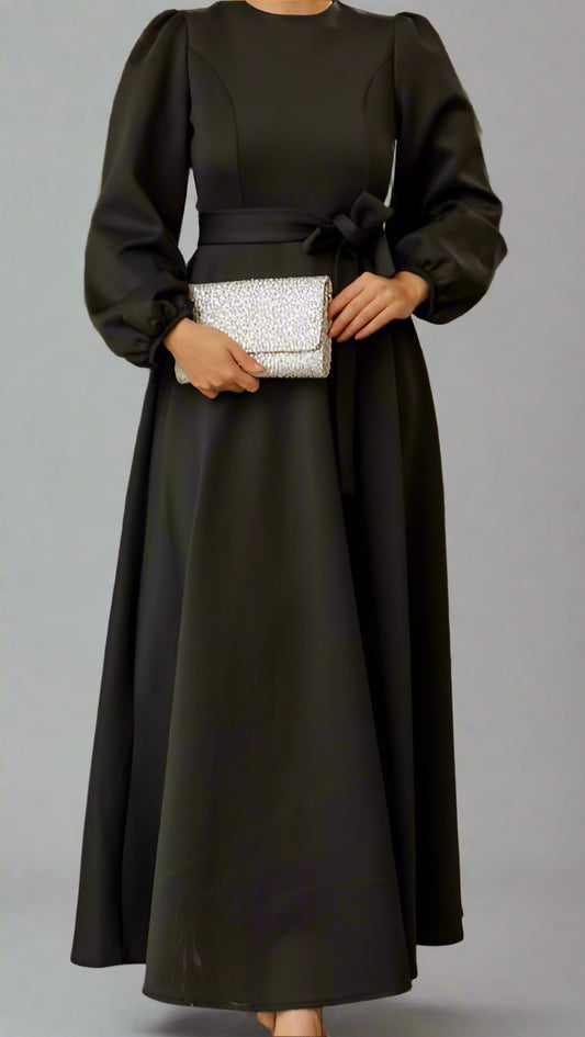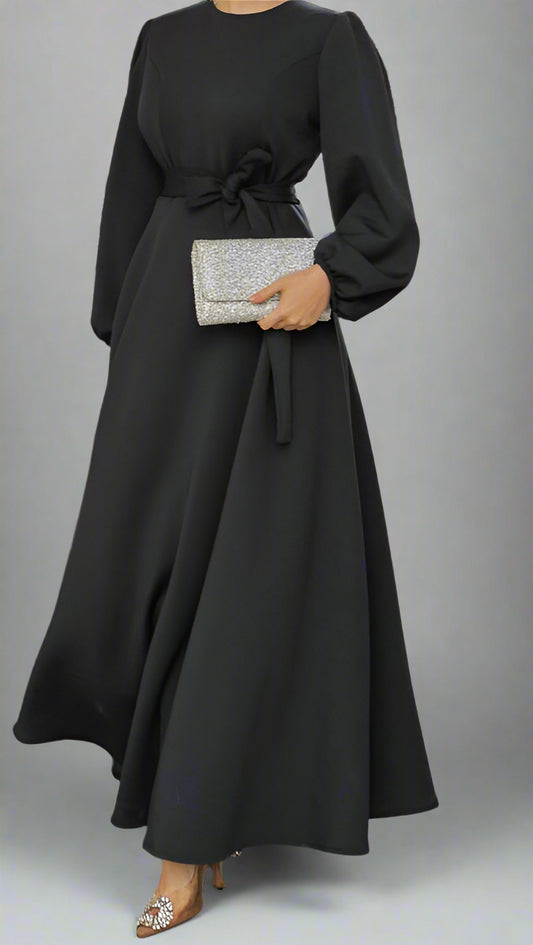 Almanal Black Maxi Dress with Belt- Gray
