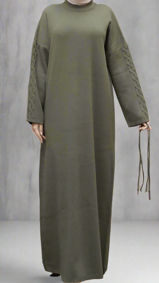 Long Dress/ Abaya with Elegant Zipper Accent- Green