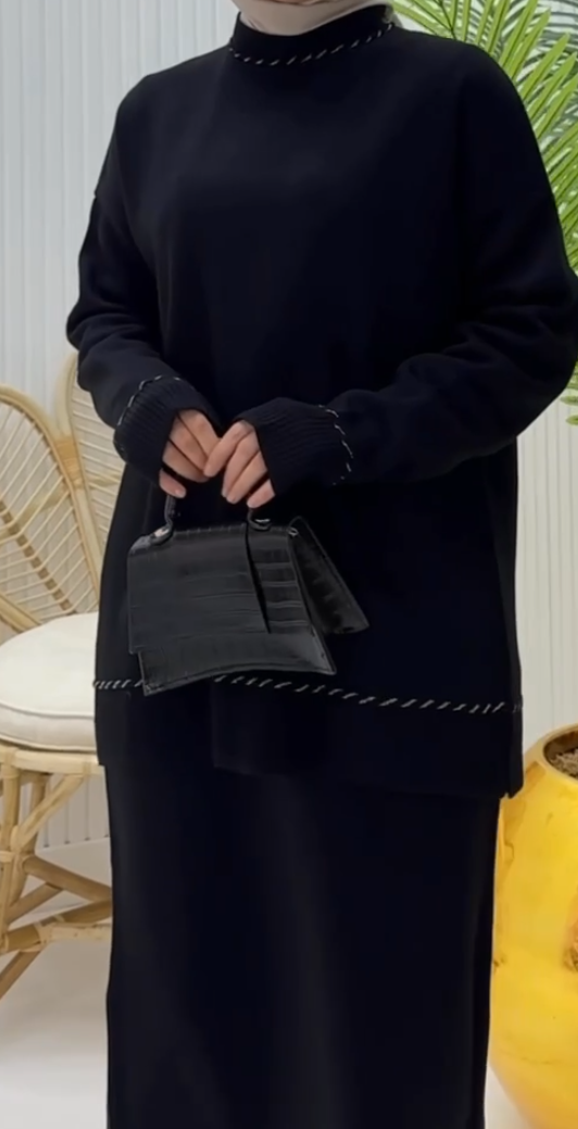 Looking for the perfect mix of comfort and style? This cozy knitwear set has you covered! Featuring a soft oversized sweater and a matching maxi skirt, it’s effortlessly chic and super comfortable. The subtle stitched details add a nice touch, making it great for casual days, work, or just lounging in style.